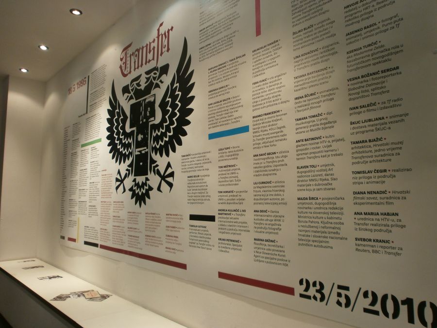 Izložba posvećena kultnoj televizijskoj emisiji Transfer, koja se kroz 15 godina emitiranja na HTV-u profilirala u jedinstven medijski i kulturološki fenomen, duboko isprepleten i integriran sa suvremenom umjetničkom scenom koju je pratio. Uz otvoreni video arhiv većine emisija snimljenih tijekom 15 godina, poseban segment izložbe čine projekcije Teorijskih filmova te kronološka kompilacija Transferovih priloga posvećenih dizajnu od sredine 90-ih do kraja 2000-ih. Izložba ujedno nastoji predstaviti i ikonički intenzitet Transfera, koji se očitovao ne samo kroz scenografije Dinka Cepaka te Svena Stilinovića i Davora Antolića Antasa, nego i sve vizualne sadržaje koje je Transfer, dokumentirajući ih, upio u sebe kao svoj integralan dio.